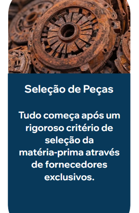 Após desmontagem, peças são tratadas e analisadas. Componentes passam por medições e testes rigorosos; os reprovados são descartados